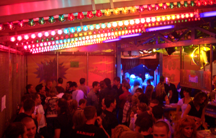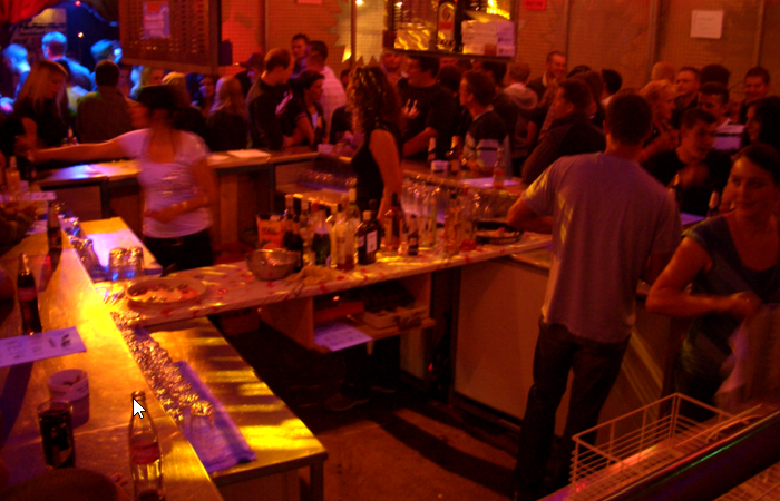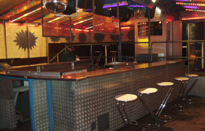 Im Innenraum befindet sich eine ca. 12m lange Bartheke. Im Arbeitsbereich befinden sich 1 Spülbecken mit Boiler, 6 Kühlschränke mit je 110 Liter Fassungsvermögen und 1 Eismaschine.