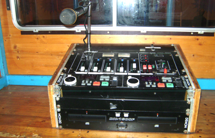 Die Musikanlage besitzt div. Endstufen, 1 Mischpult, 1 Mikrofon, 1 Doppel-CD-Player und 1 Anschluss für den Laptop.